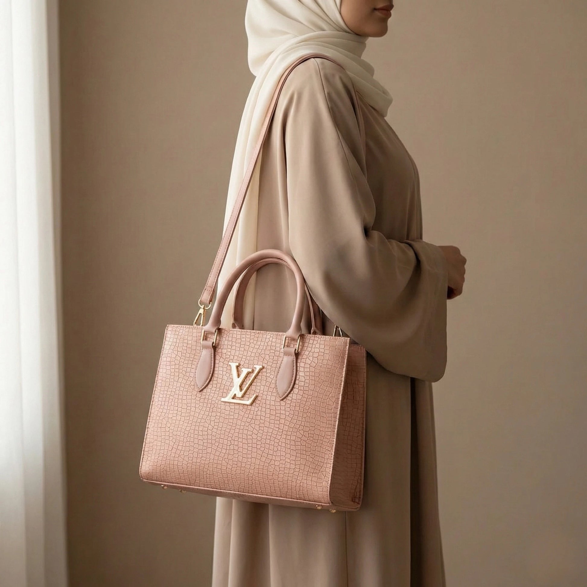 A premium glossy pink tote featuring a high-shine crocodile-embossed texture and a sleek, structured silhouette—perfect for sophisticated evening wear or a commanding business look.