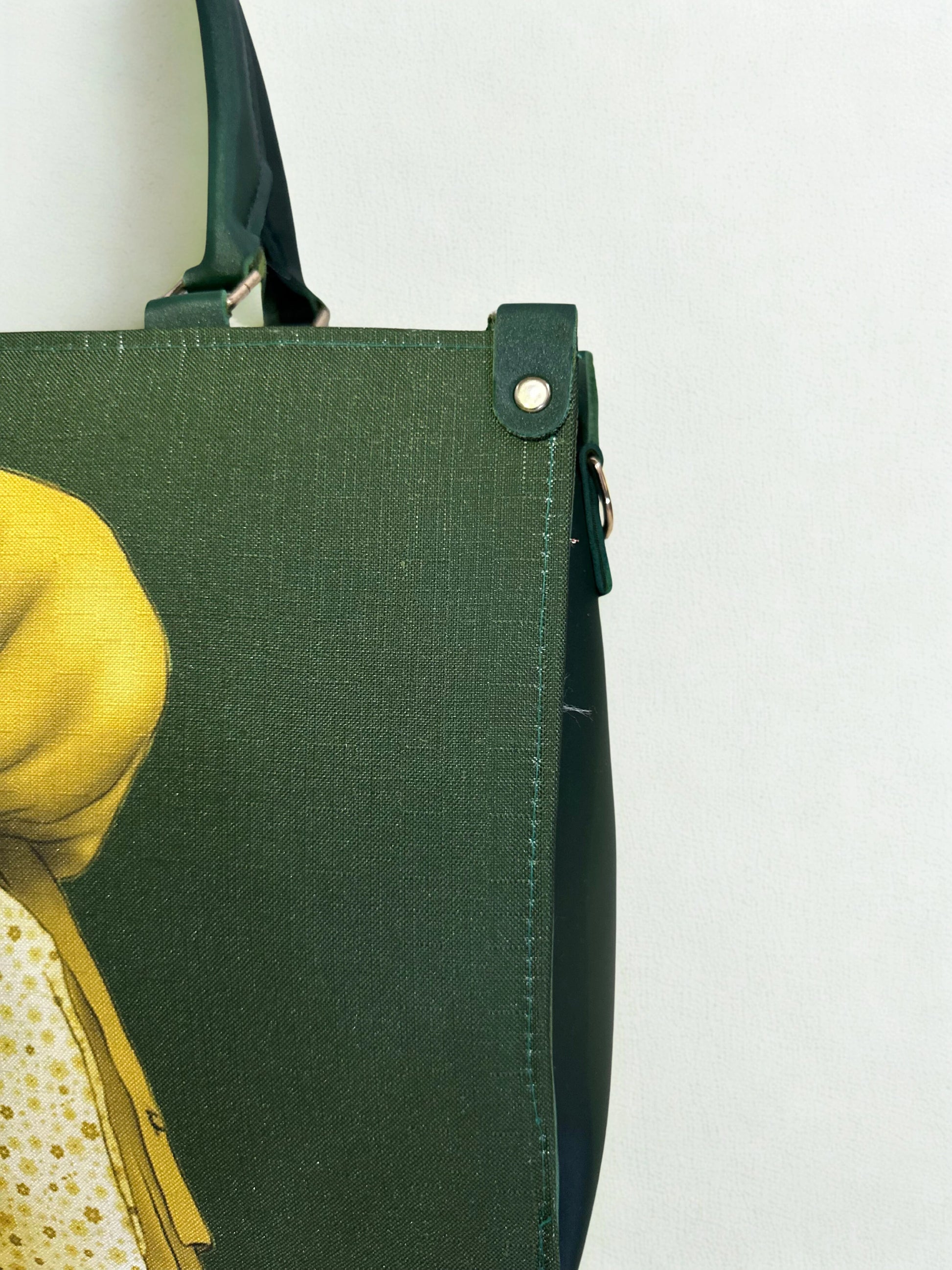 This large tote bag makes a bold statement with its artistic design and a vibrant green color. Featuring a unique print of a hijabi girl, this bag is both a stylish accessory and a piece of art. It’s perfect for the modern woman who wants to combine functionality with a unique sense of style.